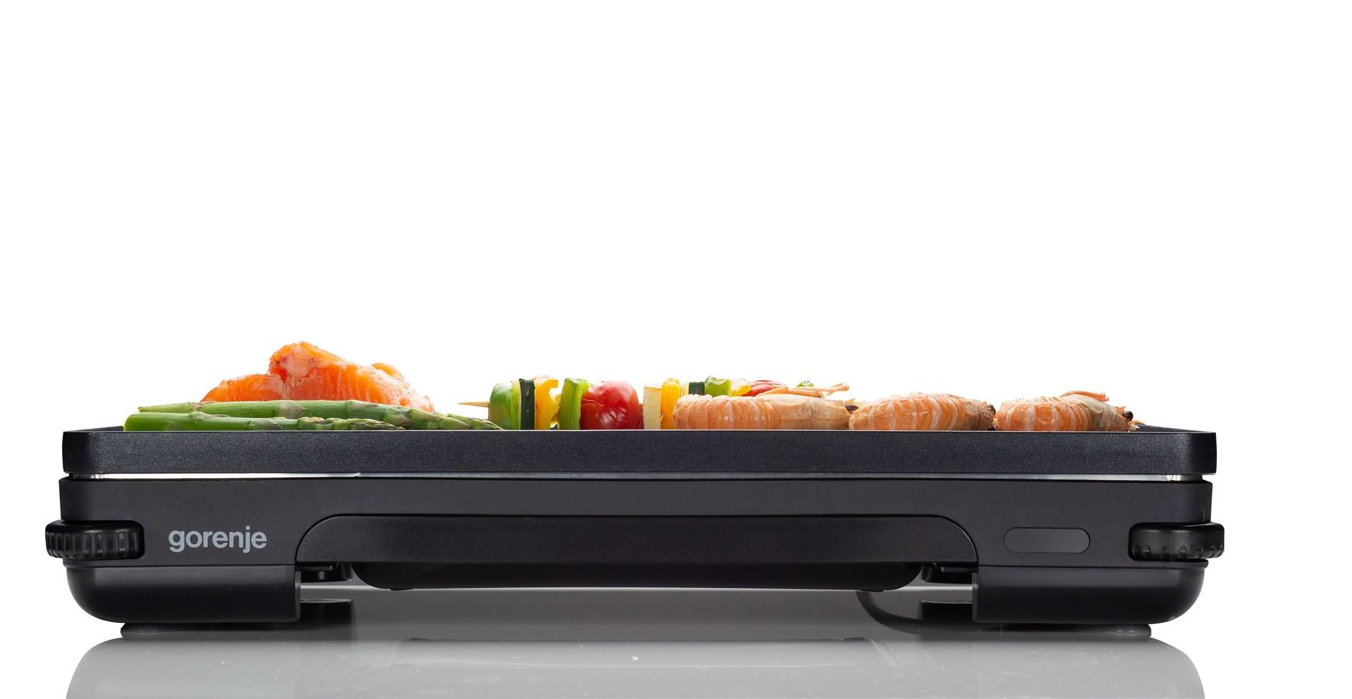 Fordele ved elgrill til altanen og køkkenetGorenje TG2000LCB er en praktisk elgrill til hverdagsmad og hyggelige grillmåltider året rundt. Den store non-stick grillplade på 32 × 48 cm giver plads til både grøntsager, fisk og kød, mens den justerbare termo